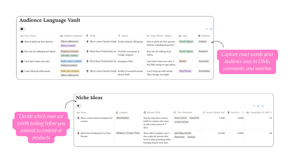 Stop guessing what to post. Stop building content around assumptions. Start validating real audience language and niche ideas with a clear, repeatable system.