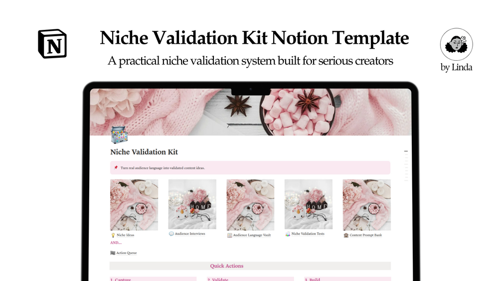 Niche Validation Kit is a Notion template built for content creators who want proof before they commit time, energy, or money to a niche, content angle, or message.