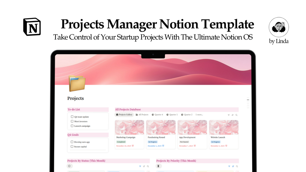 Meet the Projects Manager — a powerful Notion template designed specifically for startup founders and small teams who want clarity, focus, and predictable execution.
